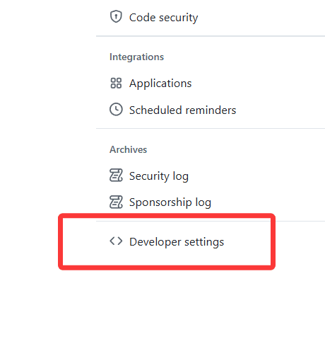 2.2.1 在 “Developer settings” 页面中,点击 “Personal access tokens”。