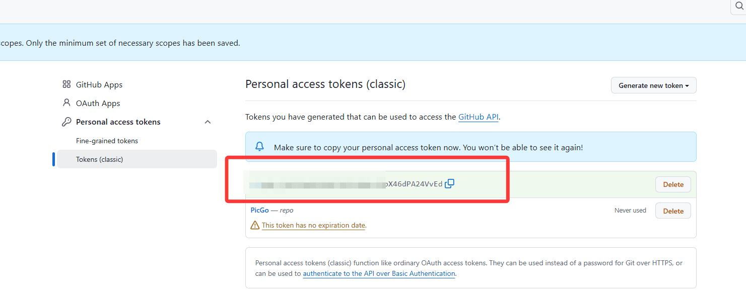 • 通过GitHub 令牌能够用于执行与你的 GitHub 账户相关的各种操作,因此请谨慎选择令牌的权限。