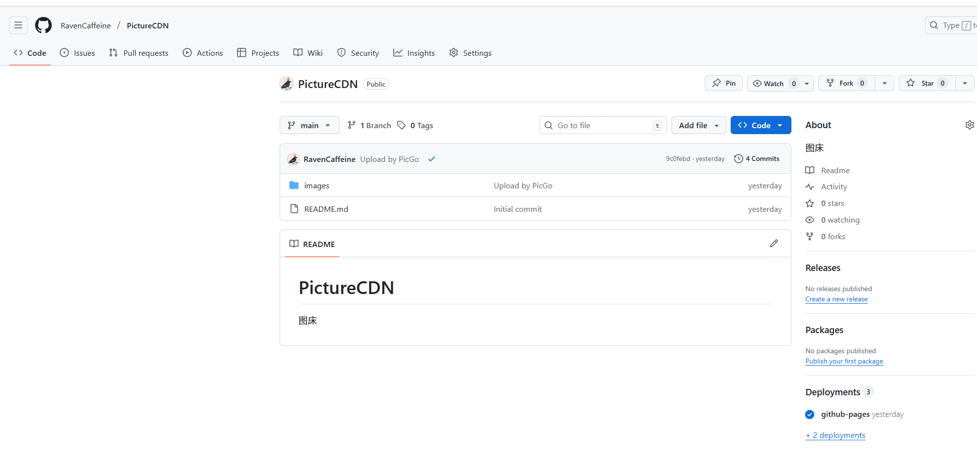 • 稍等片刻,GitHub 会生成一个 Pages 链接(比如 https://your-username.github.io/image-hosting)。