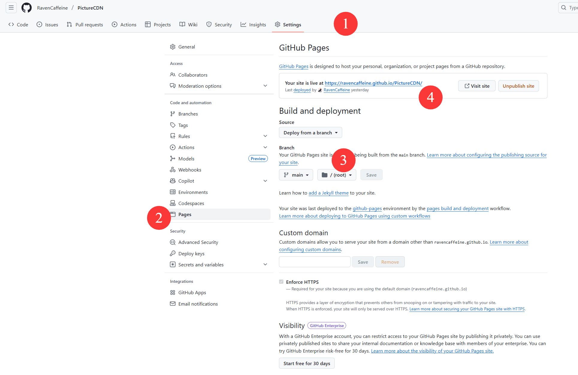 • 如果你想用更简洁的 URL 访问图片,可以启用 GitHub Pages: