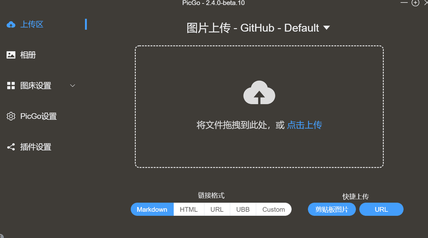 1. 打开 PicGo 窗口,将图片拖到窗口中,PicGo 会自动上传。