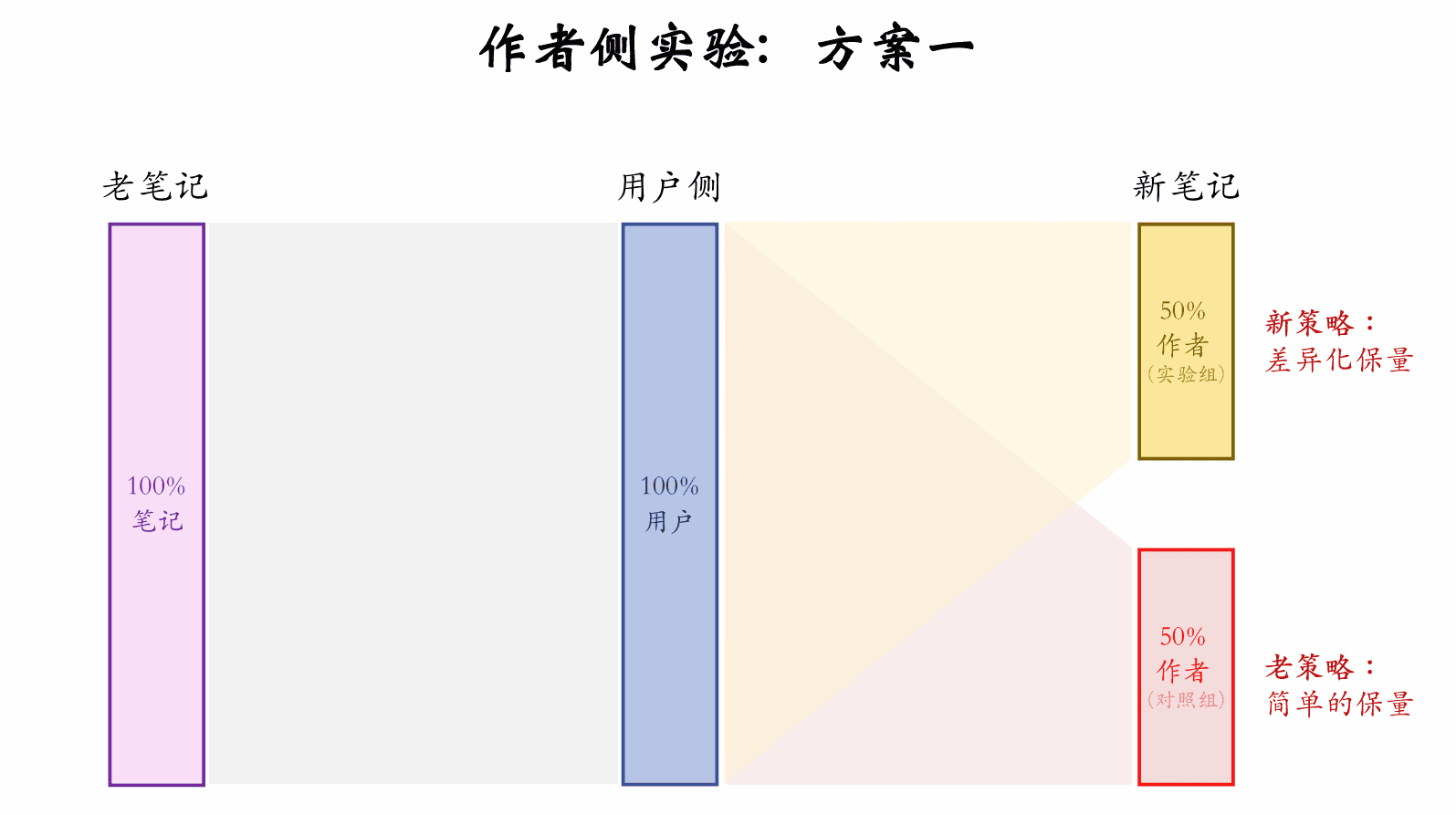 • AB 测试时,50% 新笔记(带策略)跟 100% 老笔记抢流量。